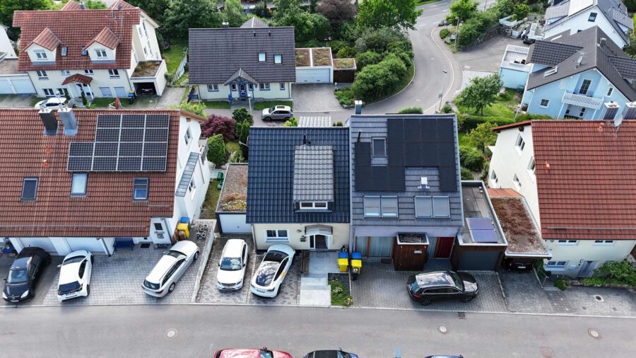 Viel Stauraum bietet ein integrierter Abstellraum unter der Garage mit Stromanschluss. Die Immobilie verfügt außerdem über eine eigene Garage und einen Stellplatz direkt vor dem Haus. Dank der Hanglage ist der Haupteingang nahezu stufenlos erreichbar – ein echtes Plus in Sachen Alltagstauglichkeit.