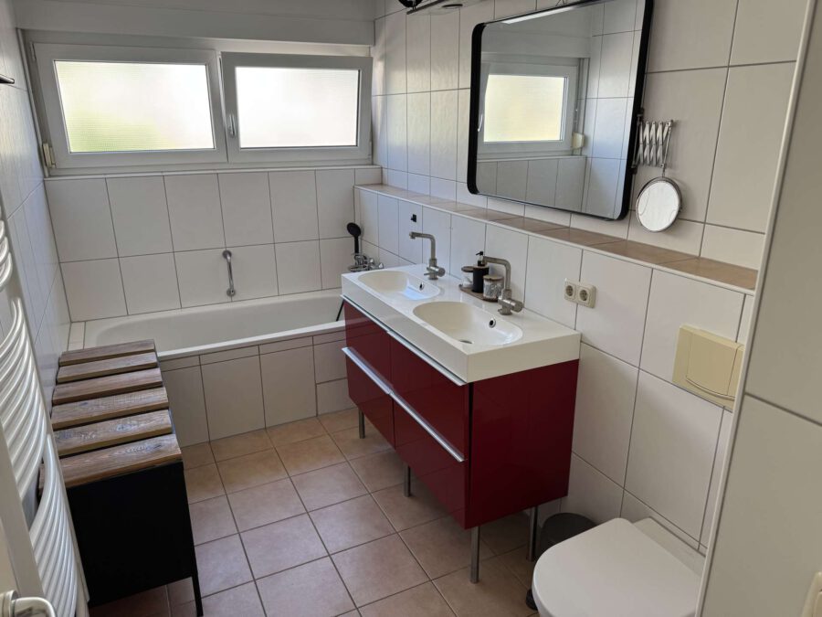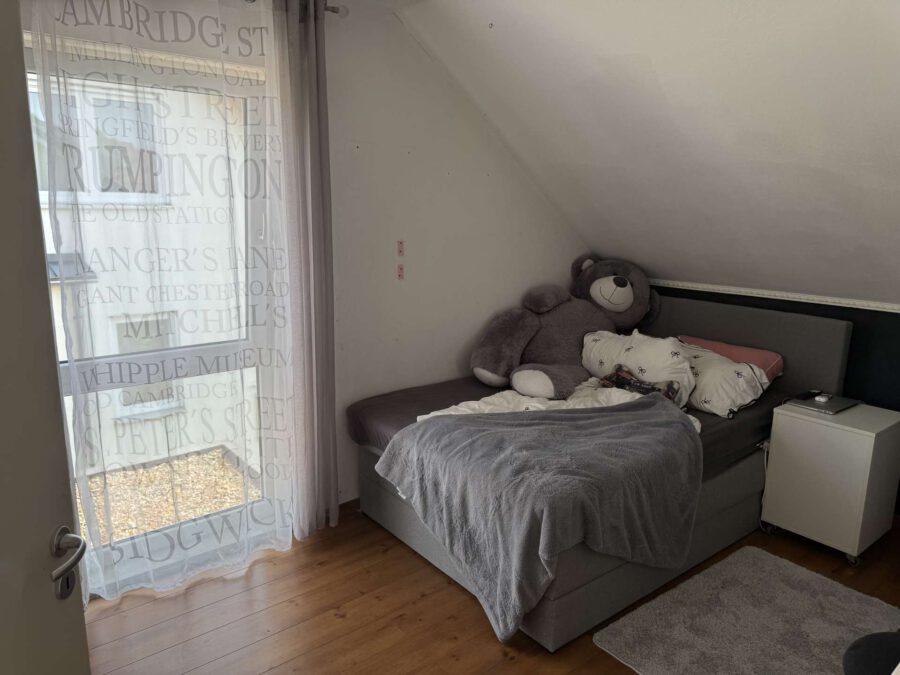 Das Dachgeschoss verfügt über drei helle Schlafzimmer mit pflegeleichtem Laminatboden. Trotz des leichten Kniestocks (ca. 1,50 m) bieten alle Räume vollwertige Stellflächen sowie große Fenster mit viel Tageslicht. Das geräumige Tageslichtbad ist mit Doppelwaschtisch, Badewanne und WC ausgestattet – perfekt für den Familienalltag.