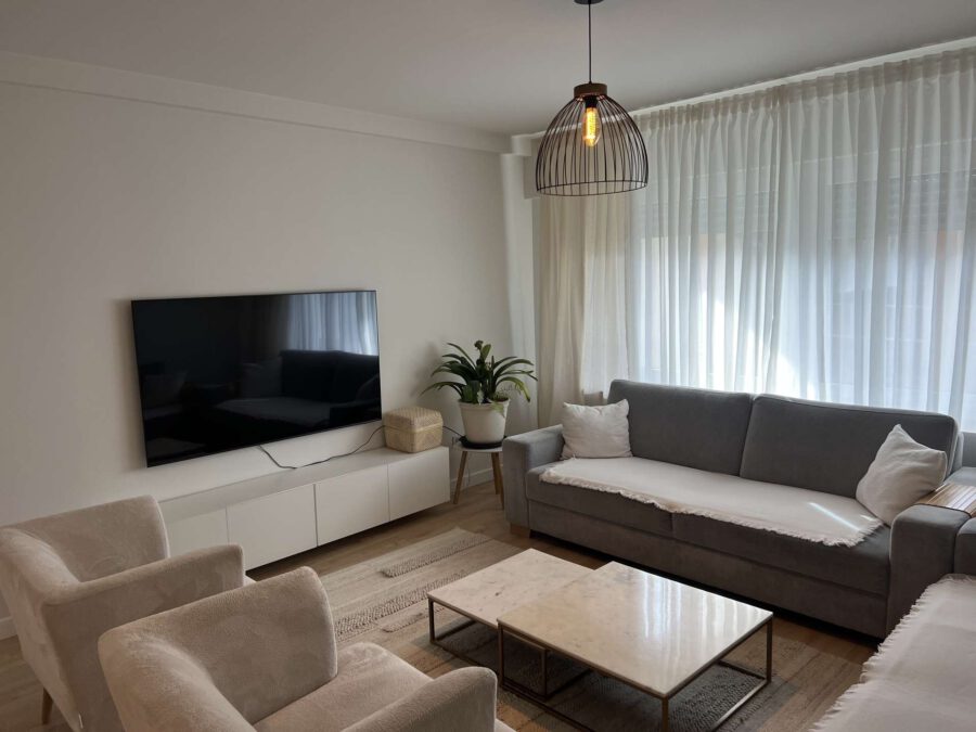 Das Wohnzimmer hat ca. 25 qm und wird über große Fensterflächen zum Hof belichtet. Die Wohnung verfügt drei Schlafzimmer sowie eine offene Küche mit Essplatz. Das Badezimmer wurde frisch renoviert und verfügt neben einer Badewanne über ein Fenster und viel Licht.