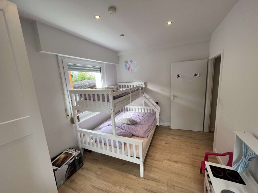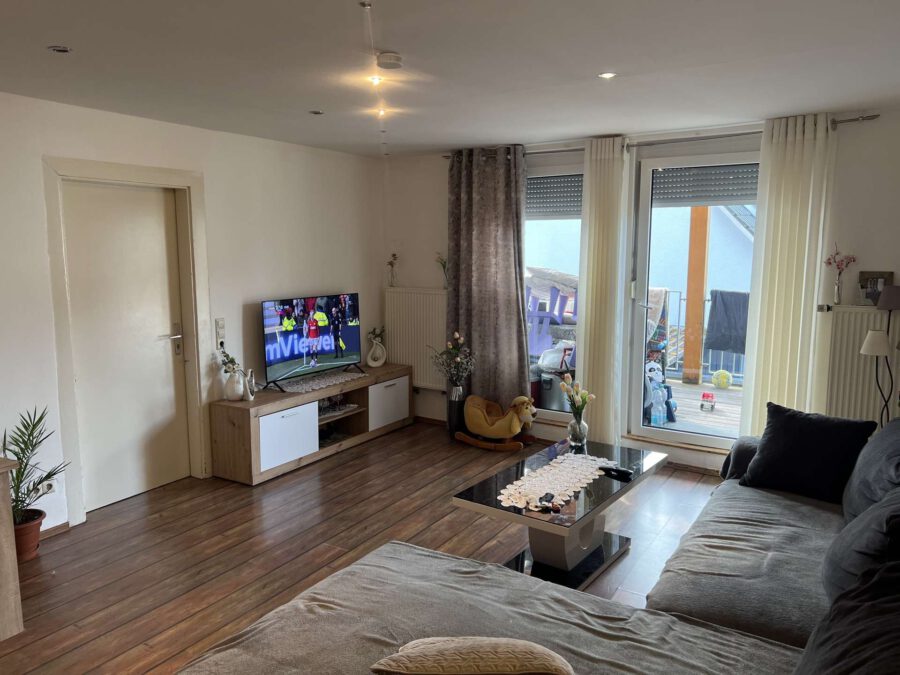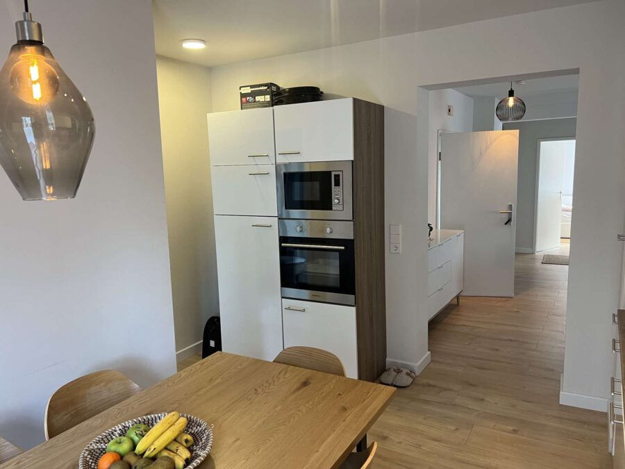 Die Wohnung im 1. Obergeschoss verfügt über ca. 96 qm Wohnfläche und bietet Platz für ebenfalls drei Schlafzimmer, einen großzügigen Wohn-Essbereich, eine Küche sowie ein Badezimmer. Über den öffentlichen Flur hat man zusätzlich noch ein Gäste WC. Vom Wohn-Essbereich aus gelangt man auf den West-Balkon.