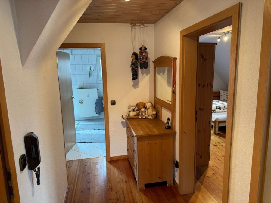 Das Obergeschoss verfügt, analog zum Erdgeschoss, über ca. 86 m² Wohnfläche, die Aufteilung weicht jedoch vom Grundriss des Erdgeschosses ab und bietet noch großzügigeren Wohnraum auf dieser Etage.
