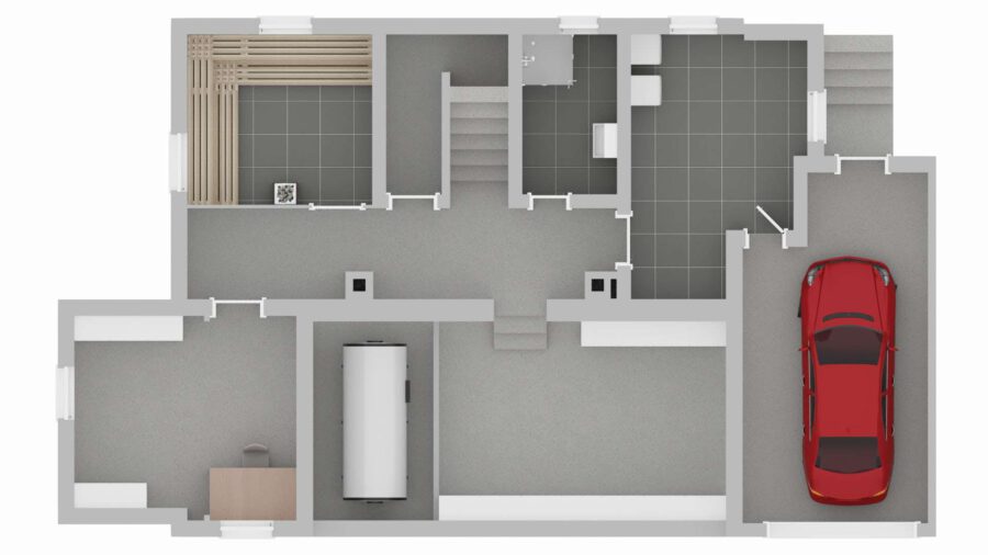 Das Haus ist voll unterkellert und verfügt über großzügige Nutzflächen. Neben dem klassischen Gewölbekeller mit gestampftem Lehmboden gibt es eine Werkstatt, eine Waschküche, ein Badezimmer mit Dusche, eine Sauna sowie einen direkten Zugang zur Garage mit elektrischem Tor. Der Keller ist trocken, gut belüftet und vielseitig nutzbar.