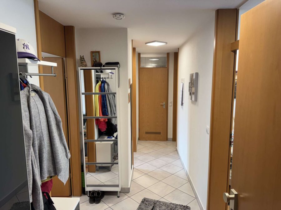 Der mittig angelegte Flur ermöglicht kurze Wege in der Wohnung und bietet zusätzlich ausreichend Platz für eine Garderobe.