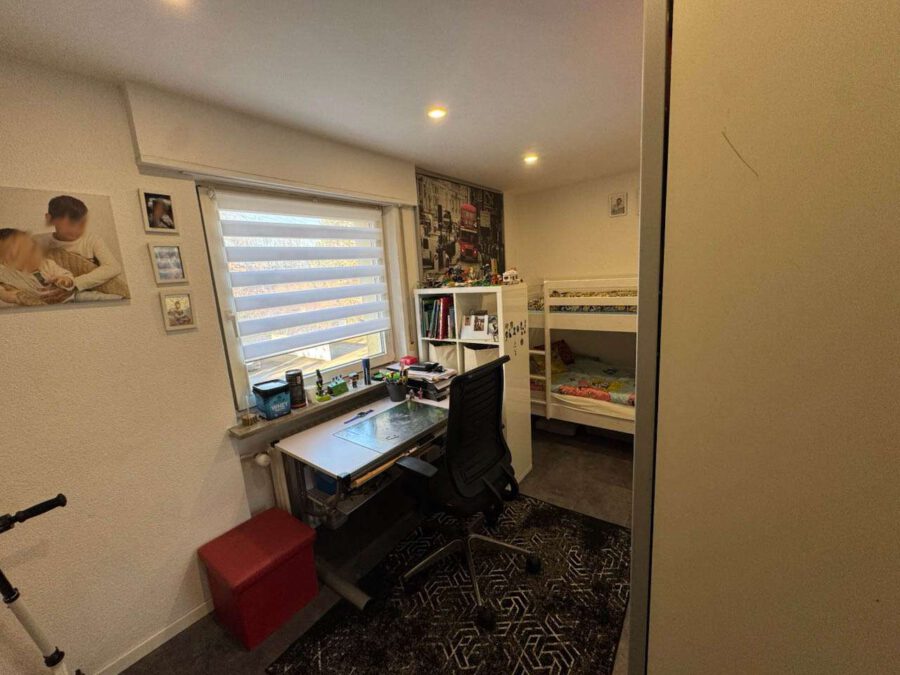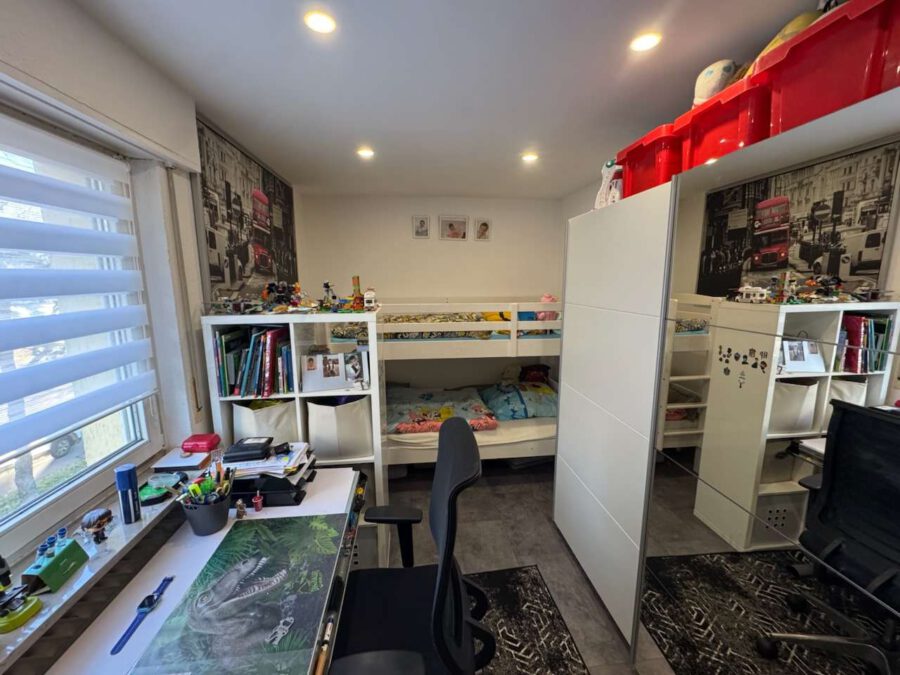 Das Kinderzimmer ist tief geschnitten und bietet ausreichend Platz für Bett, Schrank und Schreibtisch. Auch das Schlafzimmer ist großzügig dimensioniert und erlaubt eine komfortable Möblierung mit Doppelbett, großem Kleiderschrank sowie zusätzlichen Möbeln wie etwa einem Home-Office Platz. Ein doppelt verglastes Doppelfenster sorgt hier für gute Lichtverhältnisse. Praktisch ergänzen zusätzliche Steckdosen in einer Wandnische die Nutzungsmöglichkeiten.