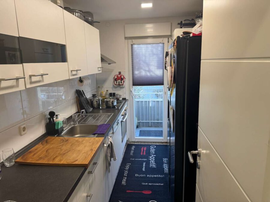 Die Küche ist aktuell vom Mieter eingerichtet und hat Zugang zum zweiten Balkon der Wohnung.