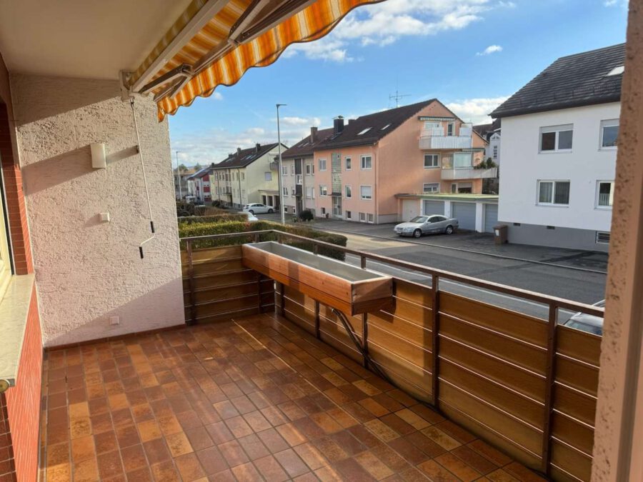 Den ca. 10 qm großen und überdachten Balkon erreicht man ebenfalls vom Wohnbereich aus.