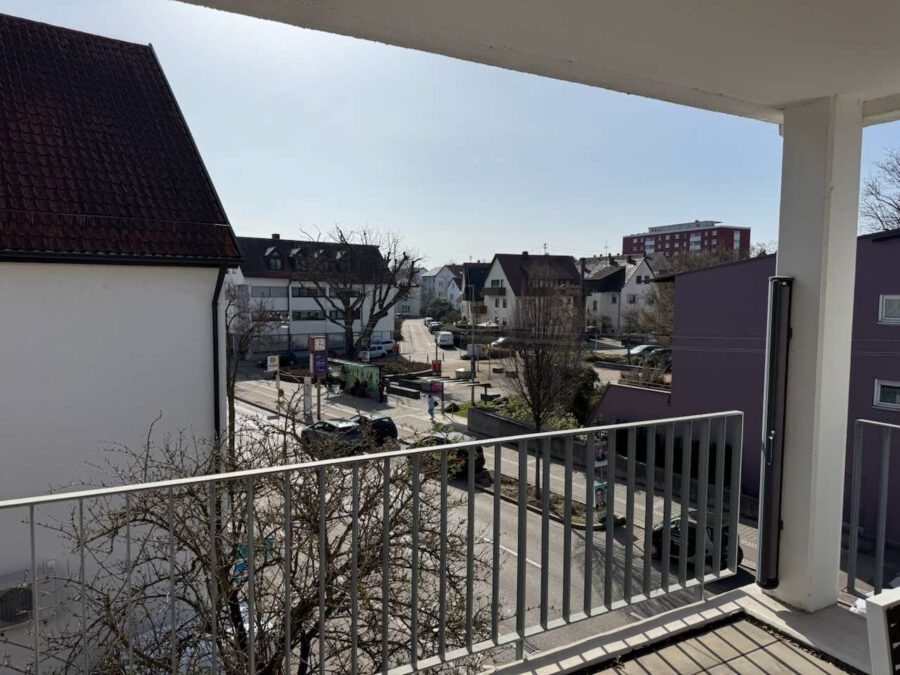 Das Herzstück der Wohnung bildet der helle Wohn- und Essbereich mit Zugang zu einer großzügigen Loggia mit Südwest-Ausrichtung. Von hier aus genießen Sie einen schönen Blick Richtung Stadt. Die überdachte Terrasse verfügt über einen Fliesenbelag und bietet einen geschützten Außenbereich zum Entspannen. Eine zweite Loggia auf der gegenüberliegenden Seite der Wohnung ist ebenfalls überdacht und teilweise verglast. Sie orientiert sich zur ruhigeren Rückseite des Gebäudes und bietet zusätzliche Aufenthaltsqualität. Vom größeren Schlafzimmer besteht zudem ein direkter Zugang zu diesem zweiten Außenbereich.