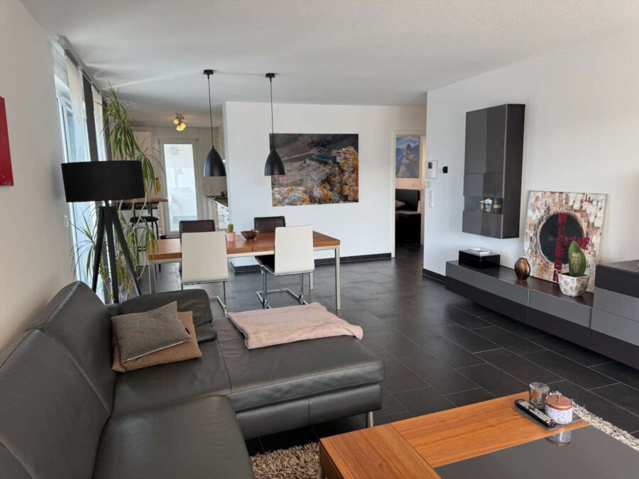 Die Wohnung wird möbliert vermietet. Das vorhandene Mobiliar – darunter Sofa, Essplatz und weitere Einrichtungsgegenstände – kann nach individueller Abstimmung übernommen werden. Alternativ besteht auch die Möglichkeit, die Wohnung vollständig ausgestattet zu übernehmen.