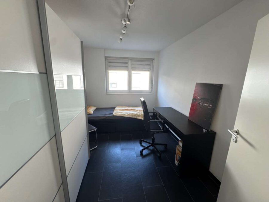 Neben dem Elternschlafen mit Bett und großem Kleiderschrank steht ein weiteres Zimmer zur Verfügung, das derzeit als Kinder- oder Arbeitszimmer eingerichtet ist und ebenfalls möbliert übergeben wird.